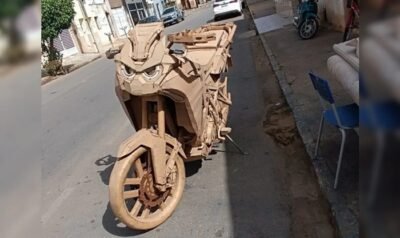 Estudante de física cria réplica de moto usando papelão na PB