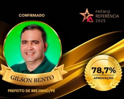 O prefeito Gilson Bento do município de Brejinho comemorou o excelente resultado de 78,7% de aprovação no Prêmio Referência 2025, promovido pela agência Cariri em Ação, que reconhece os principais destaques regionais em 31 cidades do interior da Paraíba e do Sertão Pernambucano do Pajeú.