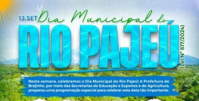 A Prefeitura de Brejinho, através das secretarias de Educação e Esportes e de Agricultura, está promovendo desta quinta, dia até 11 o próximo sábado, dia 13 de setembro, uma programação especial em homenagem ao Dia Municipal do Rio Pajeú, que foi instituído pela Lei nº 617/2024, para ser celebrado todo dia 13 de setembro.